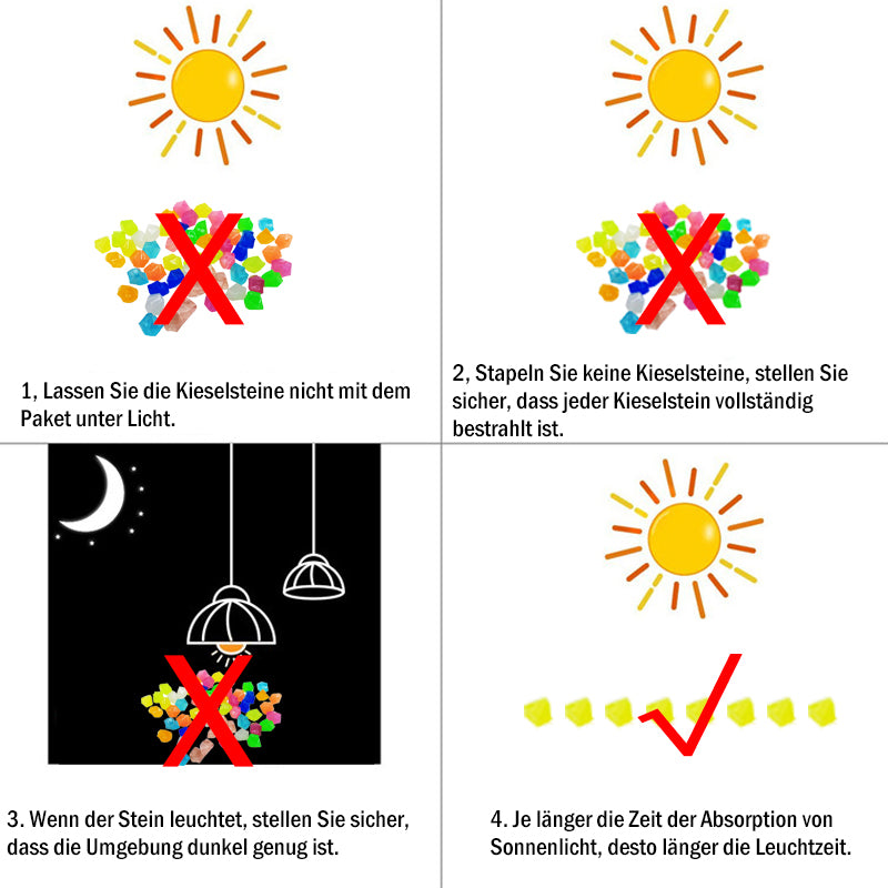 ✨【300 leuchtende Steine】 Diese leuchtenden Steine, 300 pro Beutel, leuchten im Dunkeln für etwa 3-4 Stunden nach etwa 30 Minuten direkter Sonneneinstrahlung.