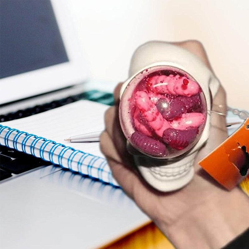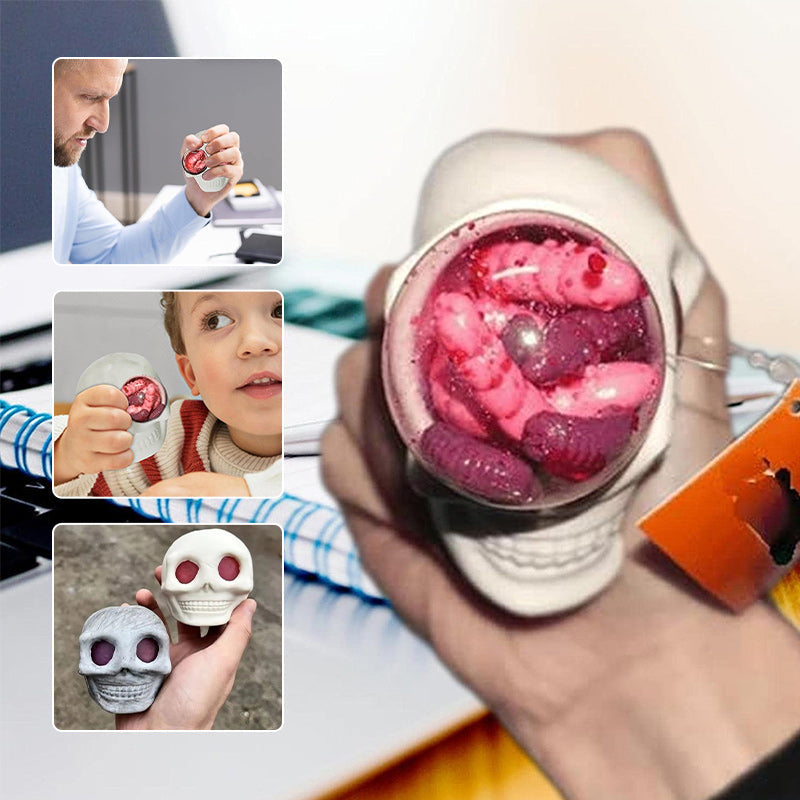 • FROHES HALLOWEEN-SCHENKGESCHENK: Der Schädel-Stressball ist absolut schrecklich und macht Spaß! Wenn Sie es, dass Sie mit Blut und Würmer belohnt quetschen, und sie werden aus den Augen herausspringen, sehen sehr böse, aber das ist, was über sie ordentlich ist.