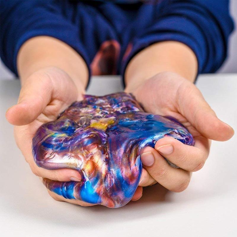 ✔️ WER KANN ES VERWENDEN: Für Jungen und Mädchen hinterlässt Galaxieschleim keine Flecken auf Möbeln oder Teppichen, sodass sie ideal für Innen- und Außenbereiche geeignet sind. Sicher für Kinder ab 3 Jahren.