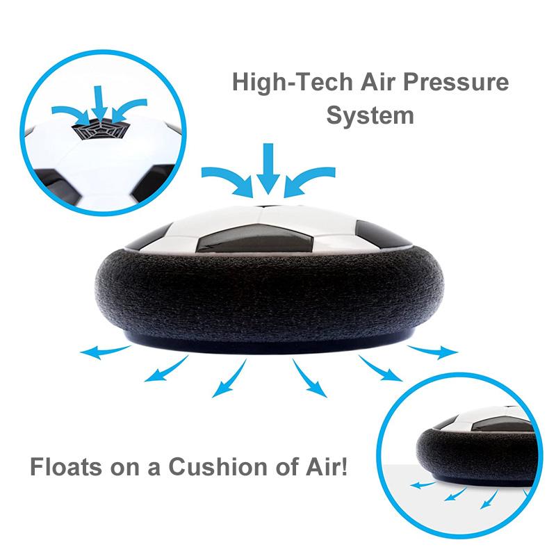 Der leuchtende Fußball schwebt auf seinem eigenen Luftkissen , wodurch er leicht gleitet und abprallt. Die weiche und flexible Schaumstoffkante kann nicht nur die Kinder vor Verletzungen schützen, sondern auch Ihre Möbel und andere Dinge vor Beschädigungen schützen.