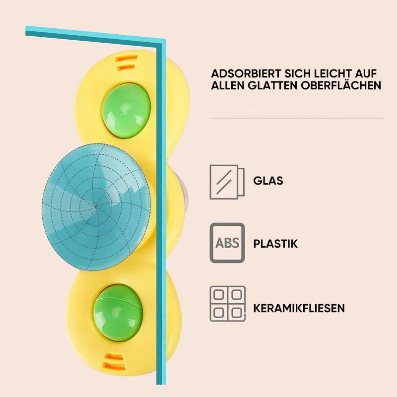 Tolles Spielzeug für 1-4-Jährige. BPA-frei, latexfrei, erdölfrei, bleifrei und phthalatfrei, sicher für Babys. Die weichen Gummisaugnäpfe an der Unterseite können auf jeder ebenen Fläche gesaugt werden, sodass sich Ihr Baby auch problemlos bewegen kann