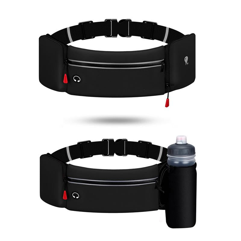 Die Hüfttasche hat ein mehrschichtiges Design, um Dinge in verschiedenen Fächern aufzubewahren. Die Hüfttasche und der Gürtel mit Schnalle sind alle super dünn, was bequemer zu trainieren und zu tragen ist