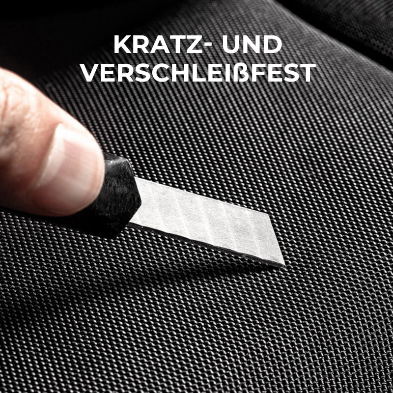 95% der Oberfläche ist abriebfestes und kratzfestes Gewebe, regenfest und spritzwassergeschützt, immer so cool!