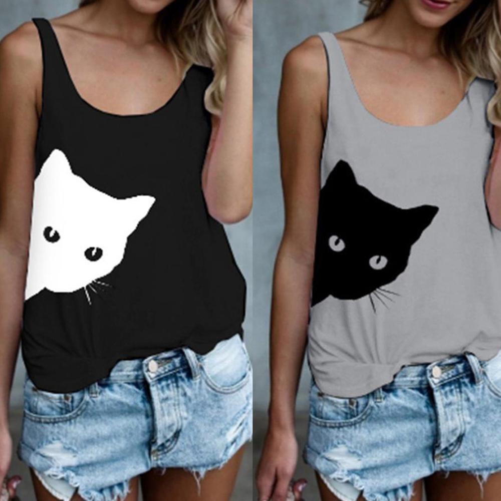 Paket enthalten:1* Ärmelloses Shirt mit Katzendrucken