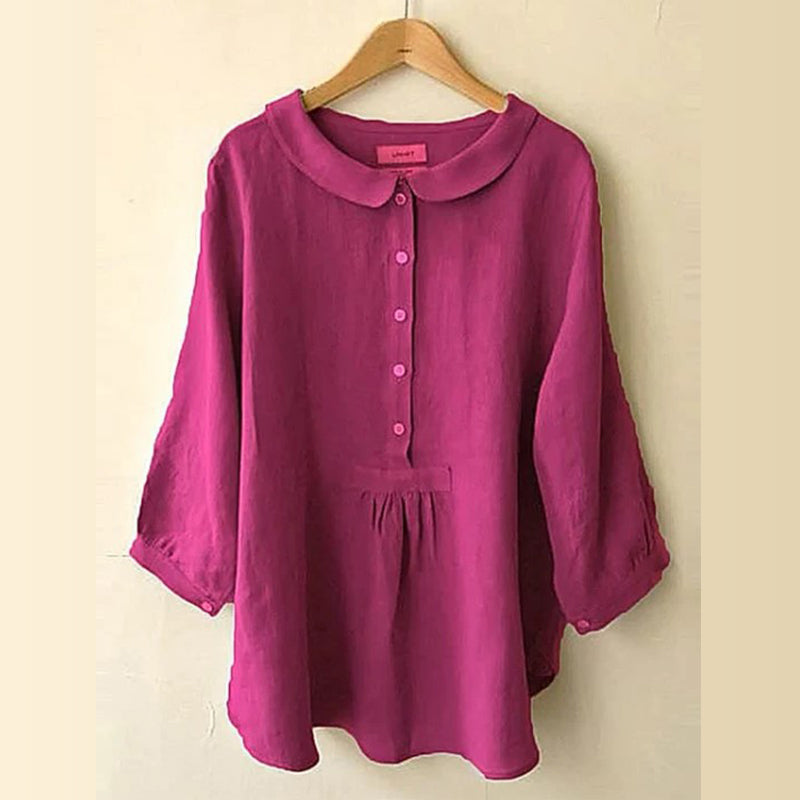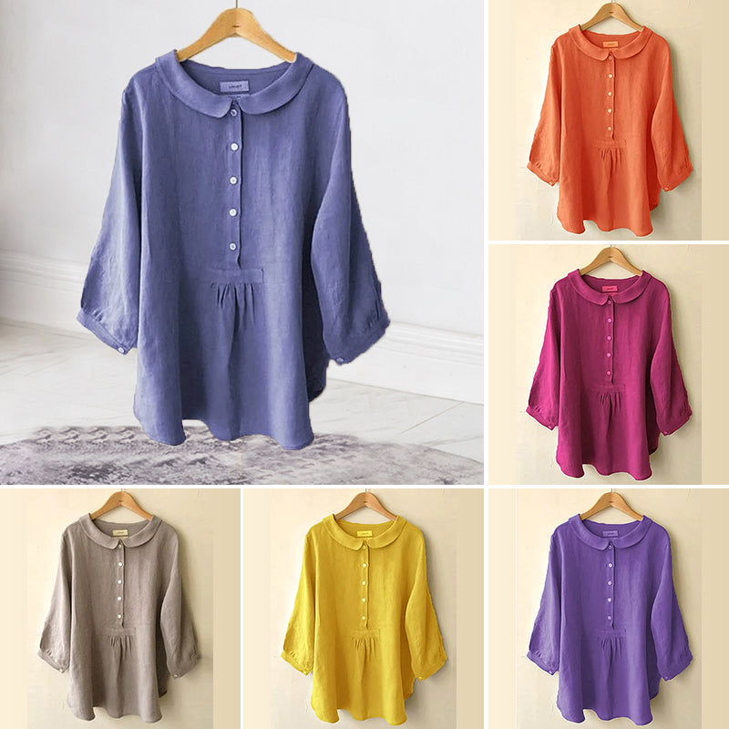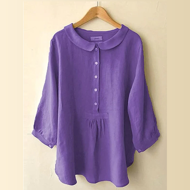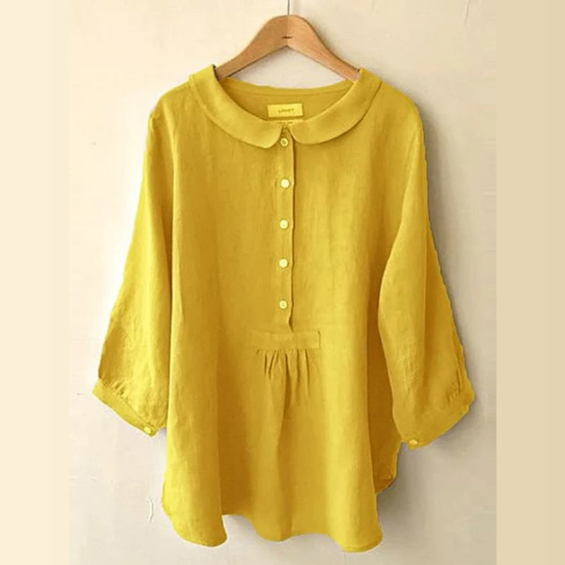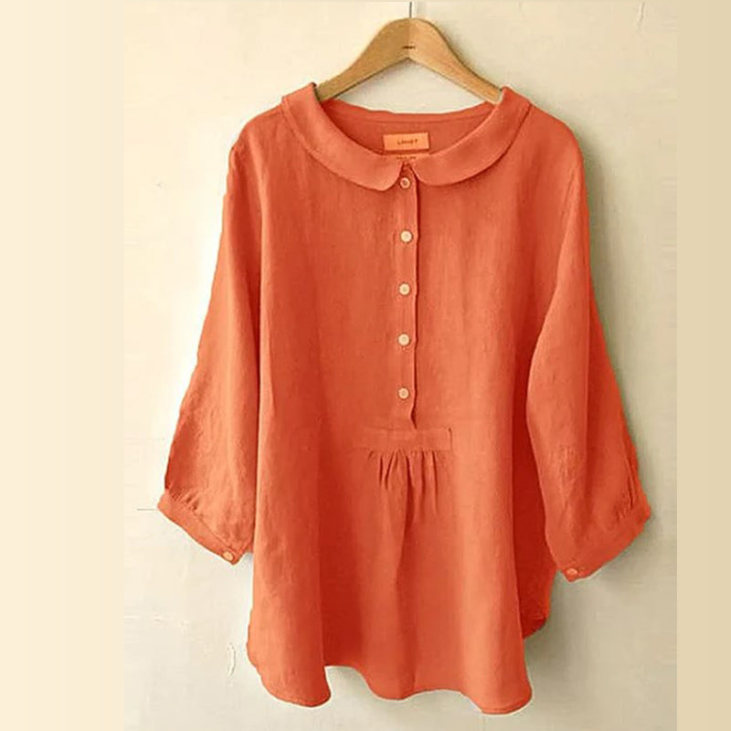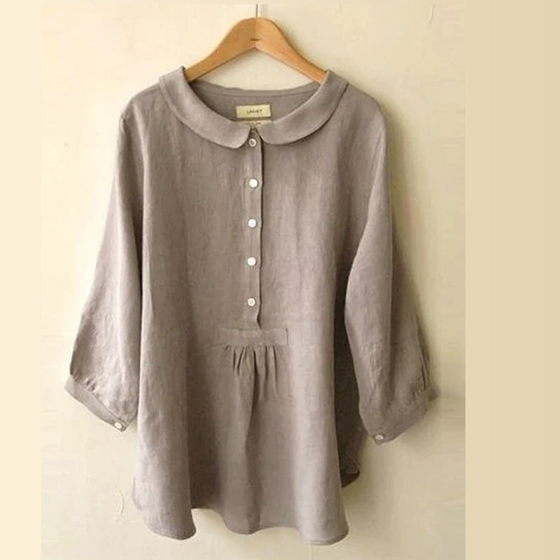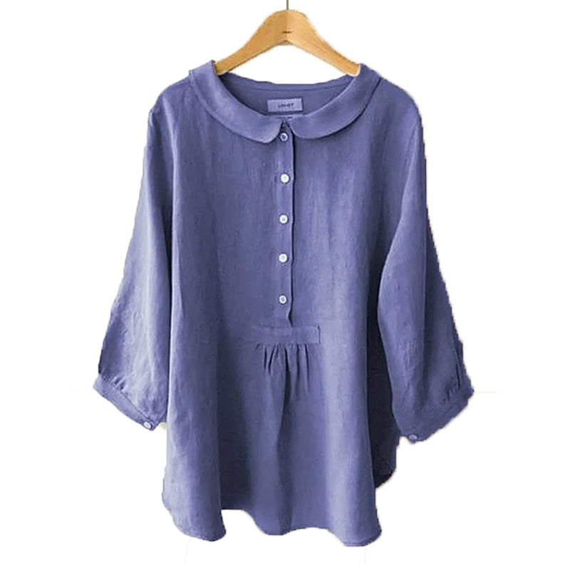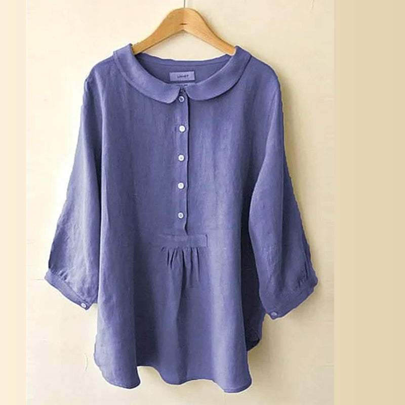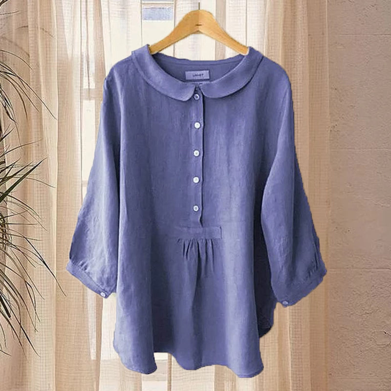 - 1* Bluse mit Puppenkragen aus Baumwolle und Leinen