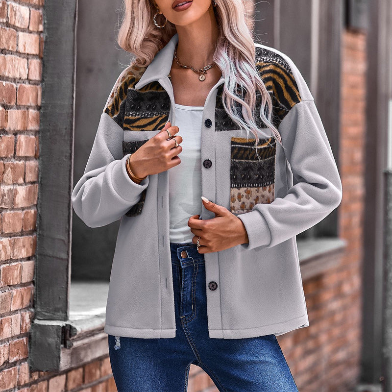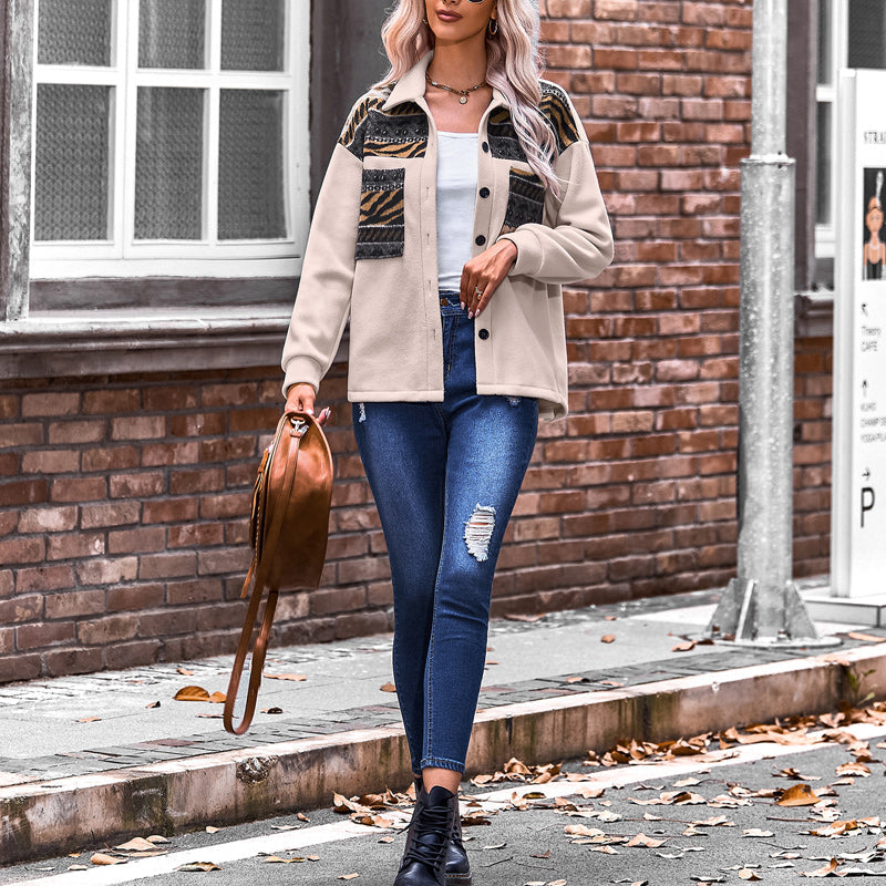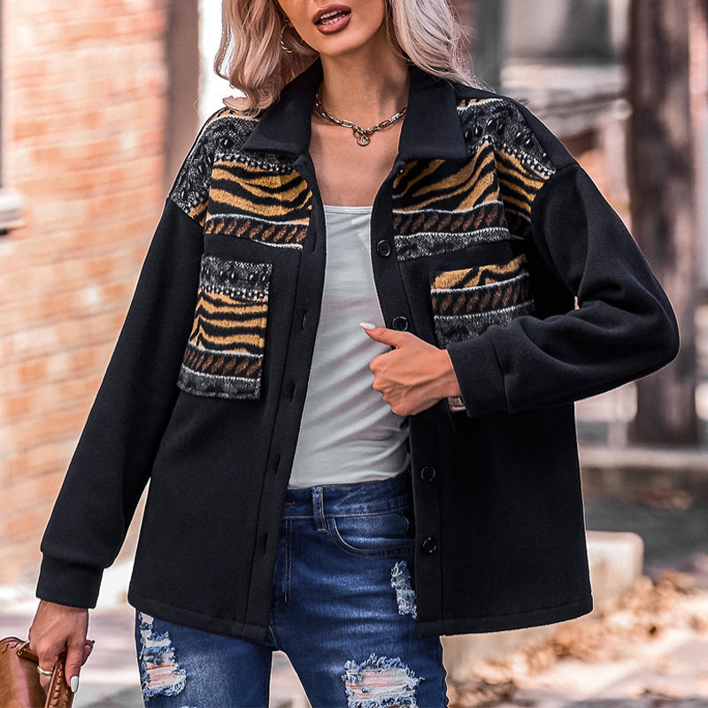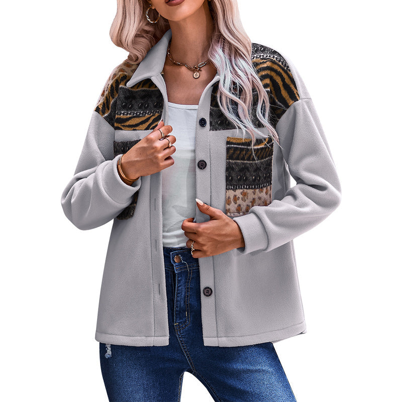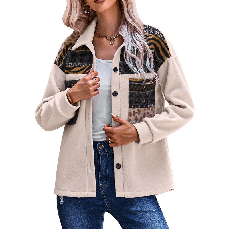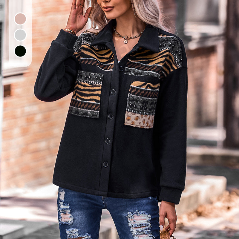 • Design: Langarm, Patchwork- und Steppdesign mit Fronttasche, warmem Stoff, Farbblock, Revers, lässige Jacke mit lockerer Passform.