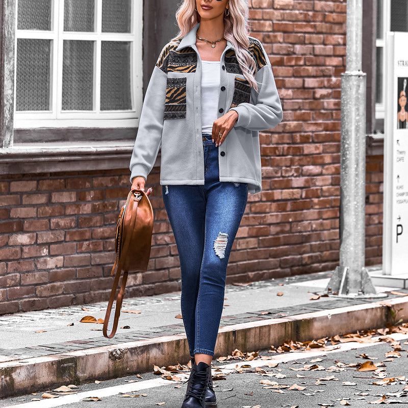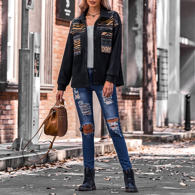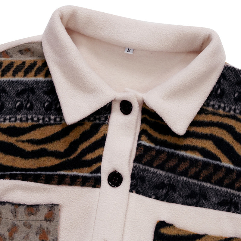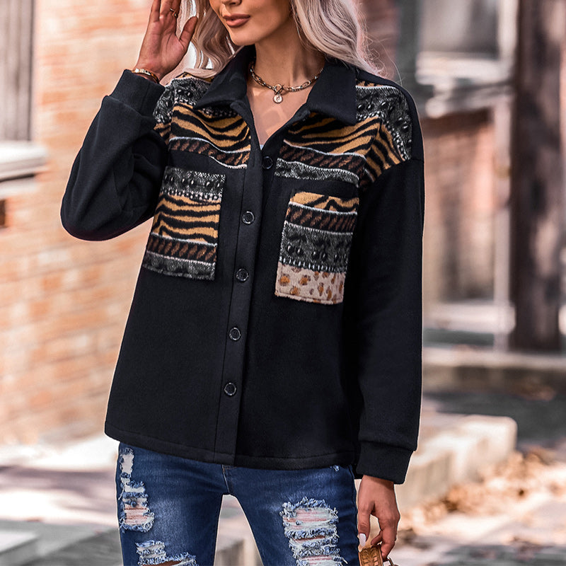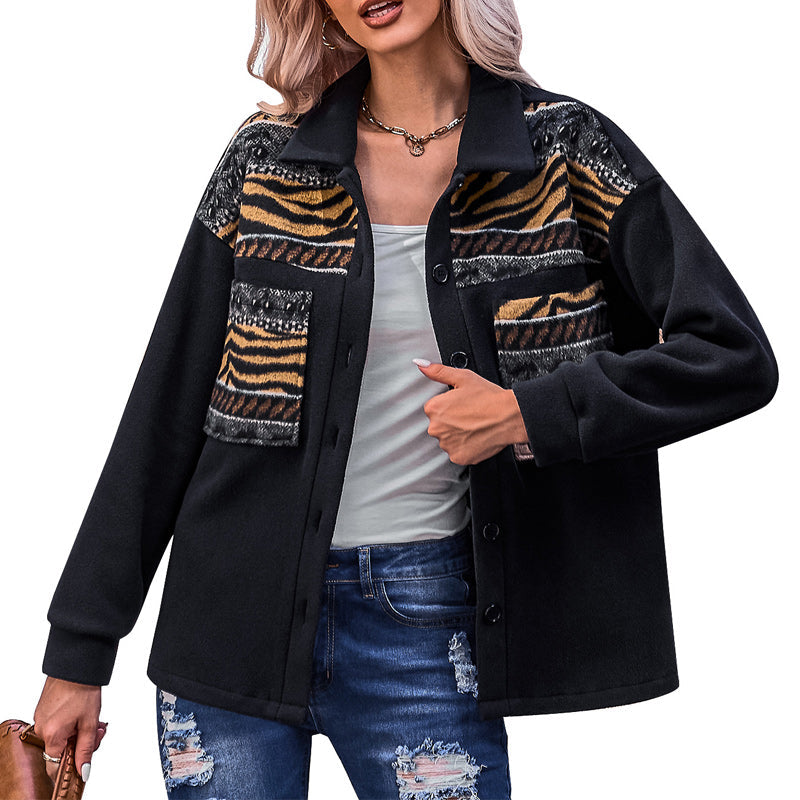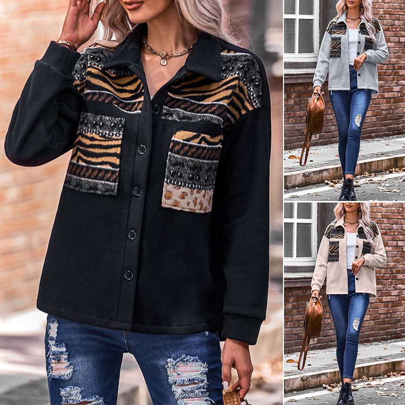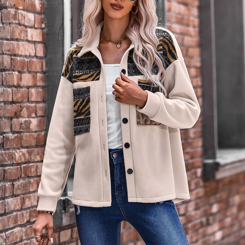 • Design: Langarm, Patchwork- und Steppdesign mit Fronttasche, warmem Stoff, Farbblock, Revers, lässige Jacke mit lockerer Passform.