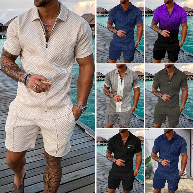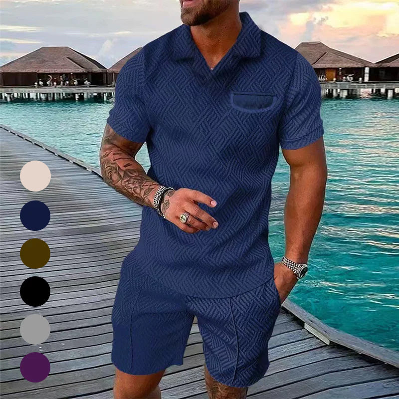 STILDESIGN: Herren-Poloshirt: lockere Passform, Knopf, Kurzarm, gespreizter Kragen; Strandshorts: mit schrägen Eingrifftaschen und Gesäßtaschen, elastischer Taillenzug. Einfaches und klassisches Kombinieren von Hemden und kurzen Anzügen, sparen Sie Zeit bei der Auswahl.