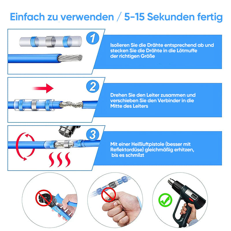 Verbinden und versiegeln Sie Drähte in Sekundenschnelle
