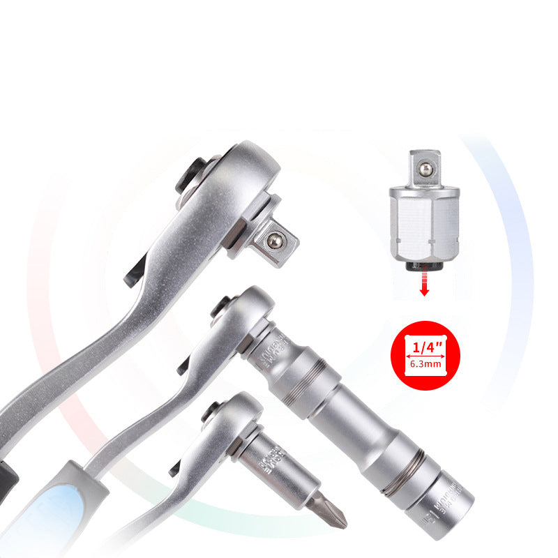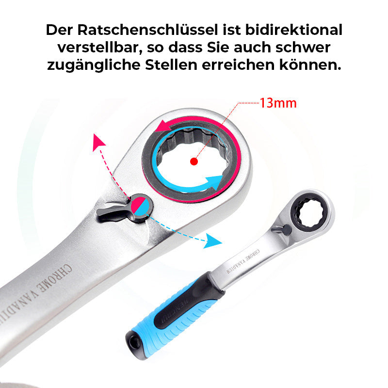 Der Ratschenschlüssel ist bidirektional verstellbar, so dass Sie auch schwer zugängliche Stellen erreichen können. Er kann als Ratschenschlüssel, Schraubendreher und Steckschlüssel verwendet werden, um alle Arten von Wartungs- und Reparaturarbeiten zu erledigen. Mit diesem Set können Sie jede Aufgabe mit Leichtigkeit und Effizienz bewältigen.