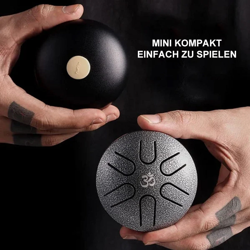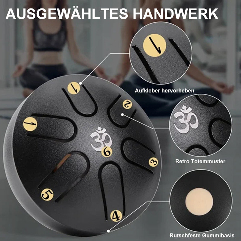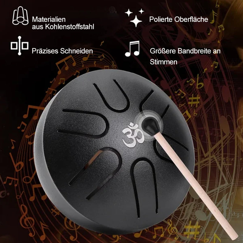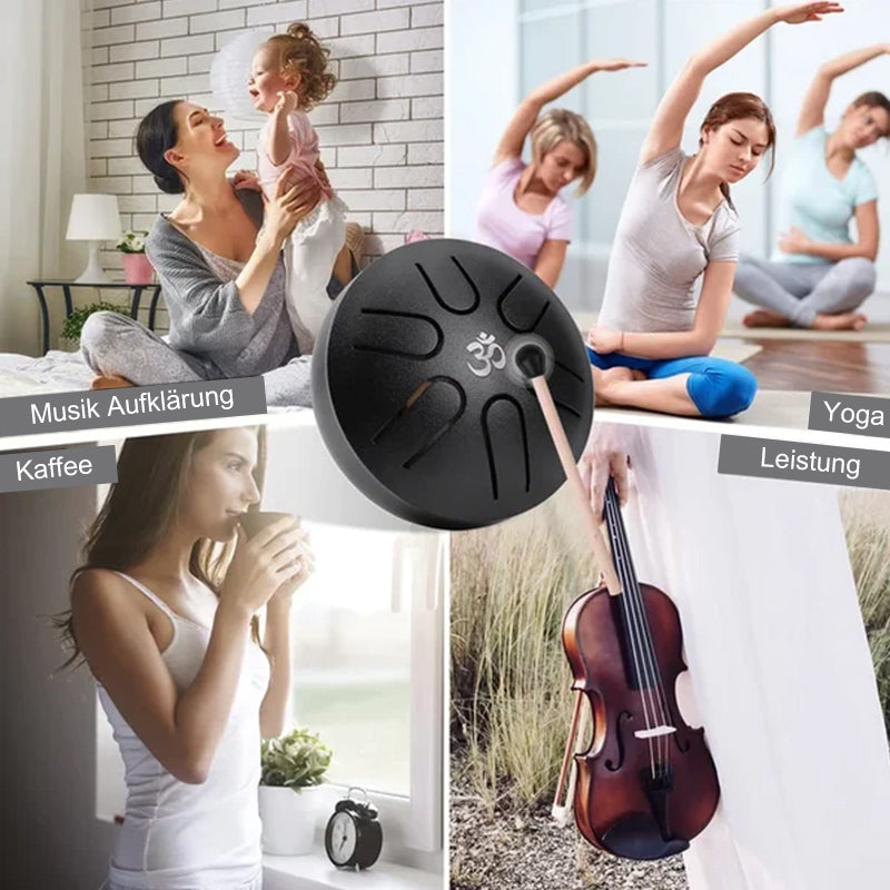 Weit verbreitet: Zungentrommeln aus Stahl eignen sich für verschiedene Bereiche, darunter Musikunterricht, Yoga, Meditation, Zazen, religiöse Aktivitäten, Geschenke usw. Zungentrommeln aus Stahl werden mit Noten geliefert, um Anfängern das Lernen und Spielen zu erleichtern. Miniatur, klein genug, um in Ihre Tasche zu passen, Sie können die Trommel überall hin mitnehmen.