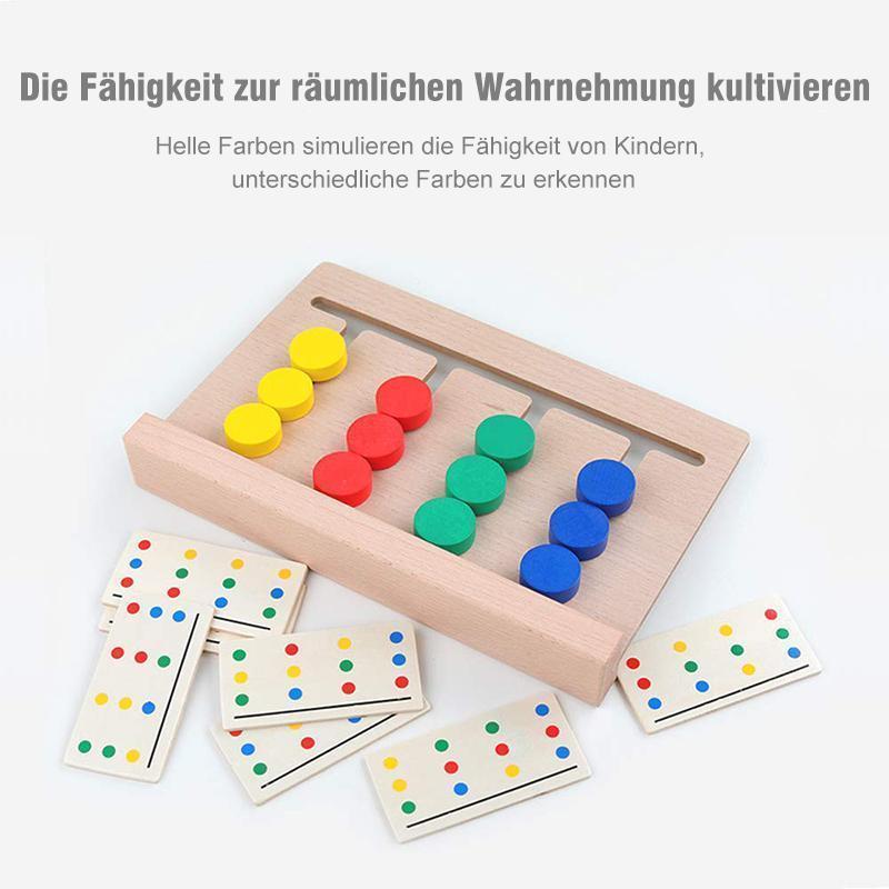 Eltern können nach dem Zufallsprinzip ein Stück Farbkarte auswählen. Kinder sollten die Farbe auf dem Brett entsprechend der Farbkarte verschieben.