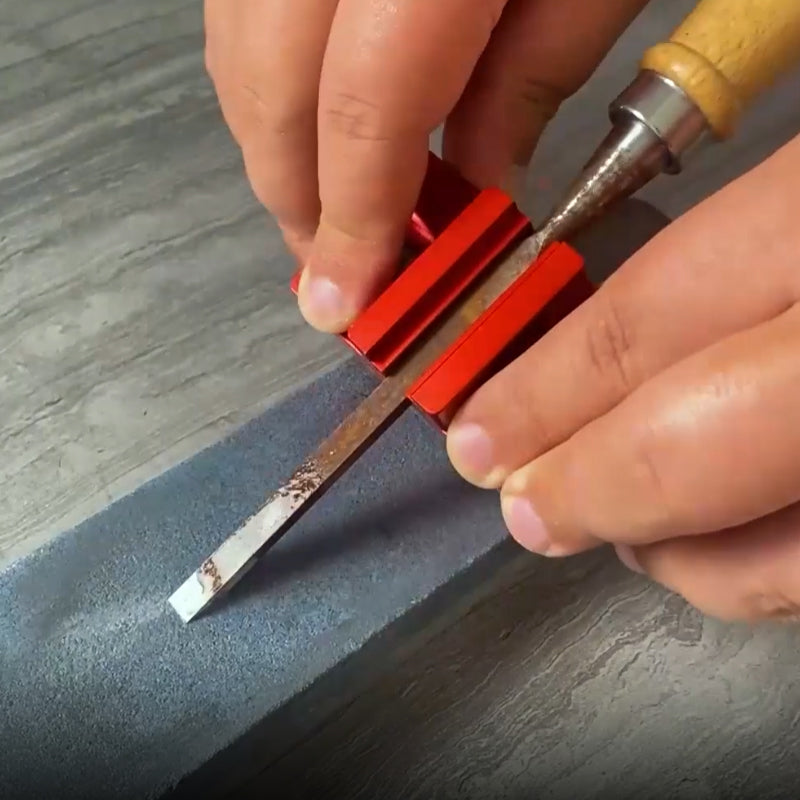 • Neu gestaltete Schärfhilfe - Diese Honführung kann den Winkel, in dem die Meißelkante den Schleifstein berührt, fixieren und einstellen, sodass die gesamte Messerkante gleichmäßig geschärft werden kann.