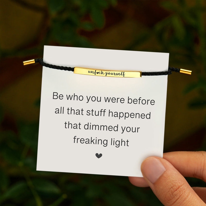 Zeigen Sie Ihre Einstellung mit diesem Armband. Dieses Armband eignet sich perfekt als erfrischendes oder inspirierendes Geschenk, das Sie motiviert und zum Lächeln bringt. Das Tragen wird Ihnen in jeder Situation als Erinnerung an Ihren Wert und Ihre Stärke dienen.