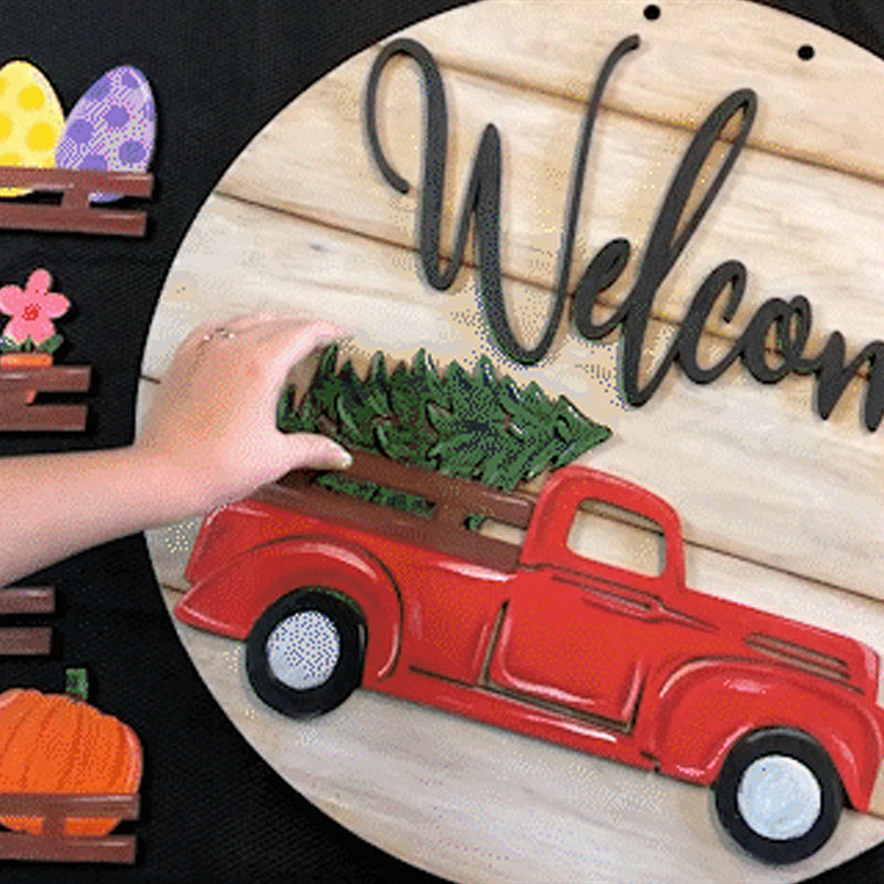 🎈Der Vintage-Truck hat eine austauschbare Ladefläche mit einer Reihe von Formen auf der Rückseite, um die Jahreszeiten und Feiertage anzuzeigen!