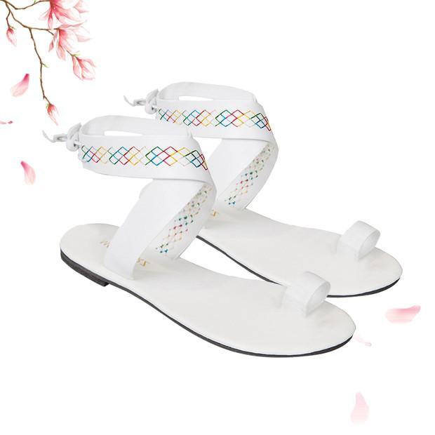 Böhmische flache Knöchelriemen Peep Toe Strand lässige Sandalen
