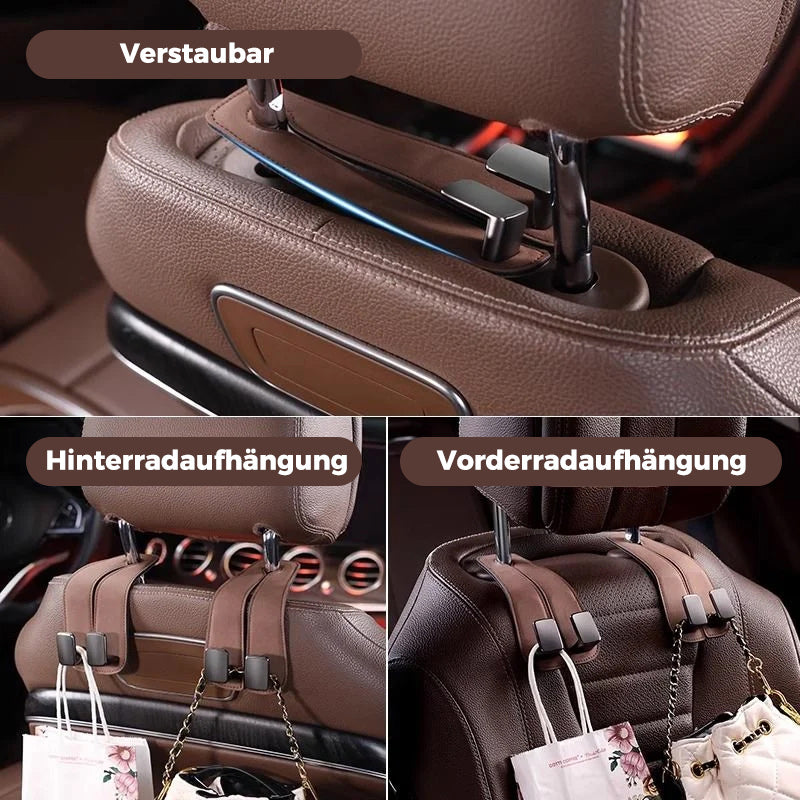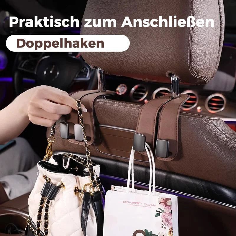Sorgen Sie mit diesem praktischen Doppelhaken und Handyhalter für Ordnung und Ordnung in Ihrem Auto und machen Sie Ihre Fahrten angenehmer und stressfreier.
