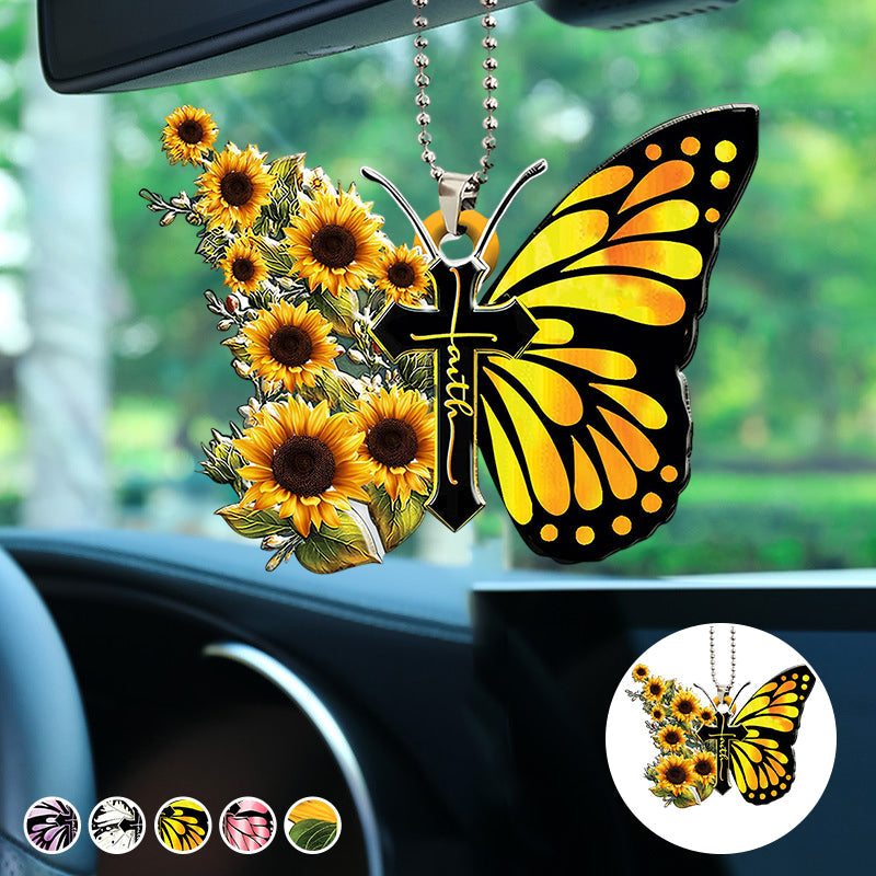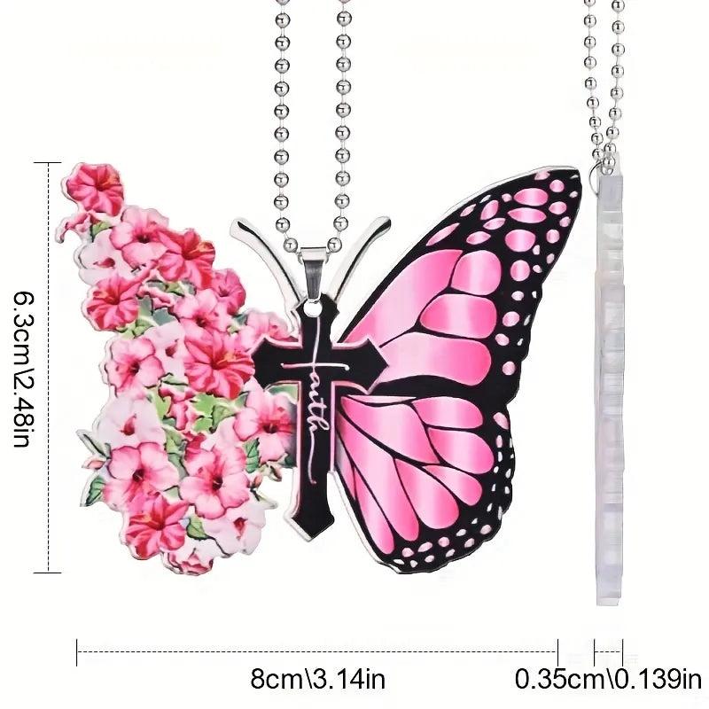 【Delikates Design】Der Schmetterling steht für neues Leben, die Blume symbolisiert die Liebe zum Leben, und das Kreuz ist der Glaube an die Religion. Die Kombination der drei drückt den Hass auf die Dunkelheit, die Suche nach dem Licht und einen festen Geist aus. Erinnern Sie jemanden daran, sicher zu fahren oder jemanden an Sie und besondere Erinnerungen zu erinnern.