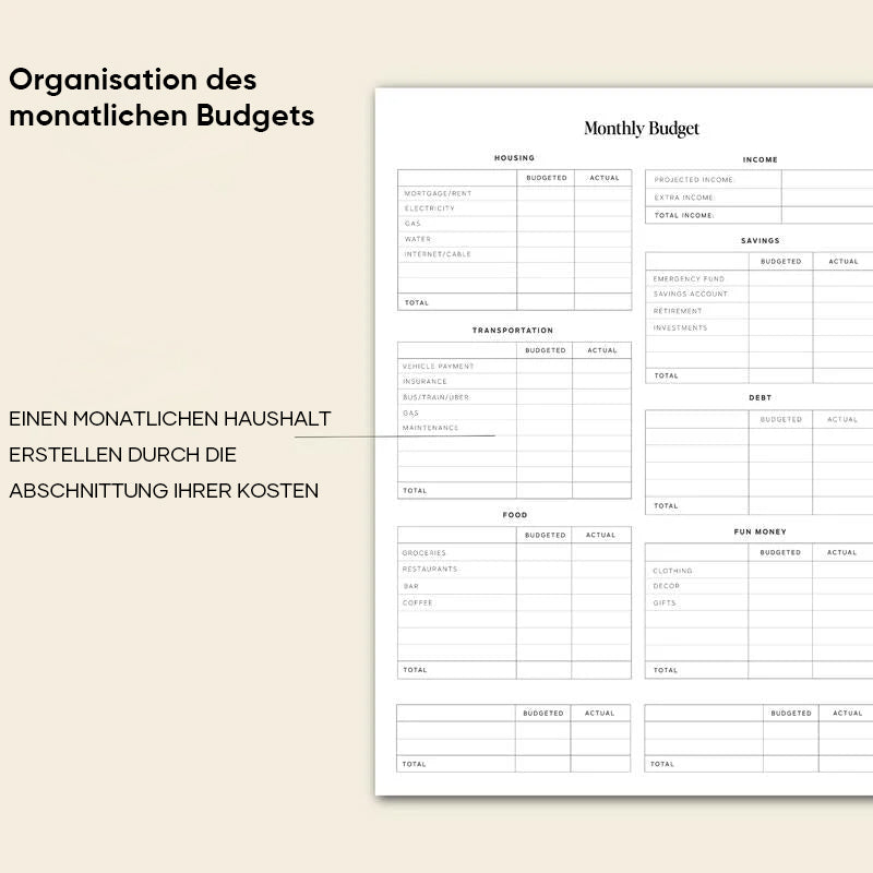 - Wöchentliche Übersicht – Enthält eine Einkaufsliste, einen Workout-Tracker, ein Tagesmenü, eine Frist und wichtige To-Dos